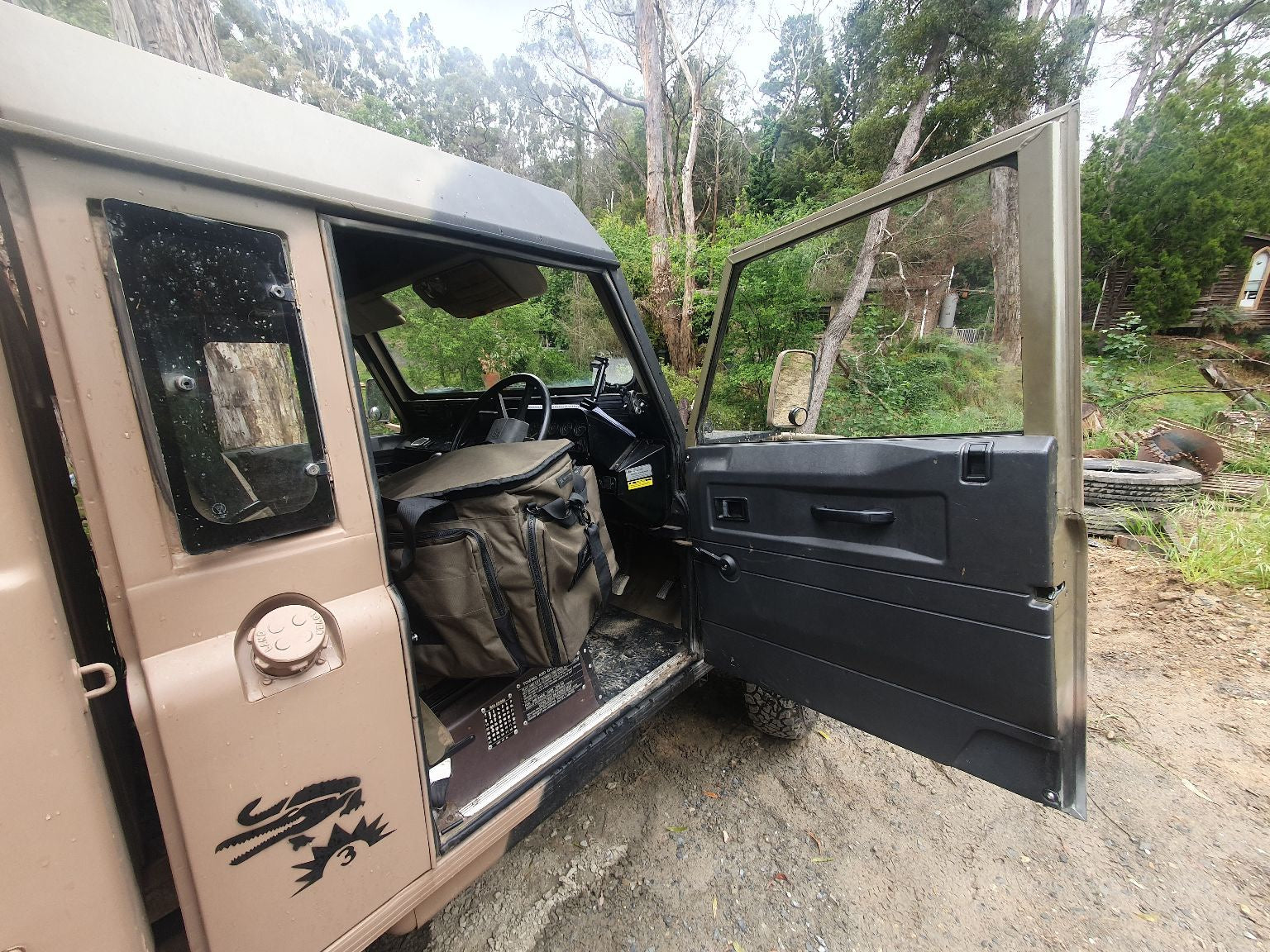Tough 900D HD Polyester Canvas with a PVC internal coating - abrasion-resistant, weatherproof, and easy to clean. Designed to withstand red dirt, rain, and rough surfaces. The heavy-duty liner may arrive with some creasing or a ‘new gear’ smell after shipping - both are normal, fade quickly, and don’t affect performance.