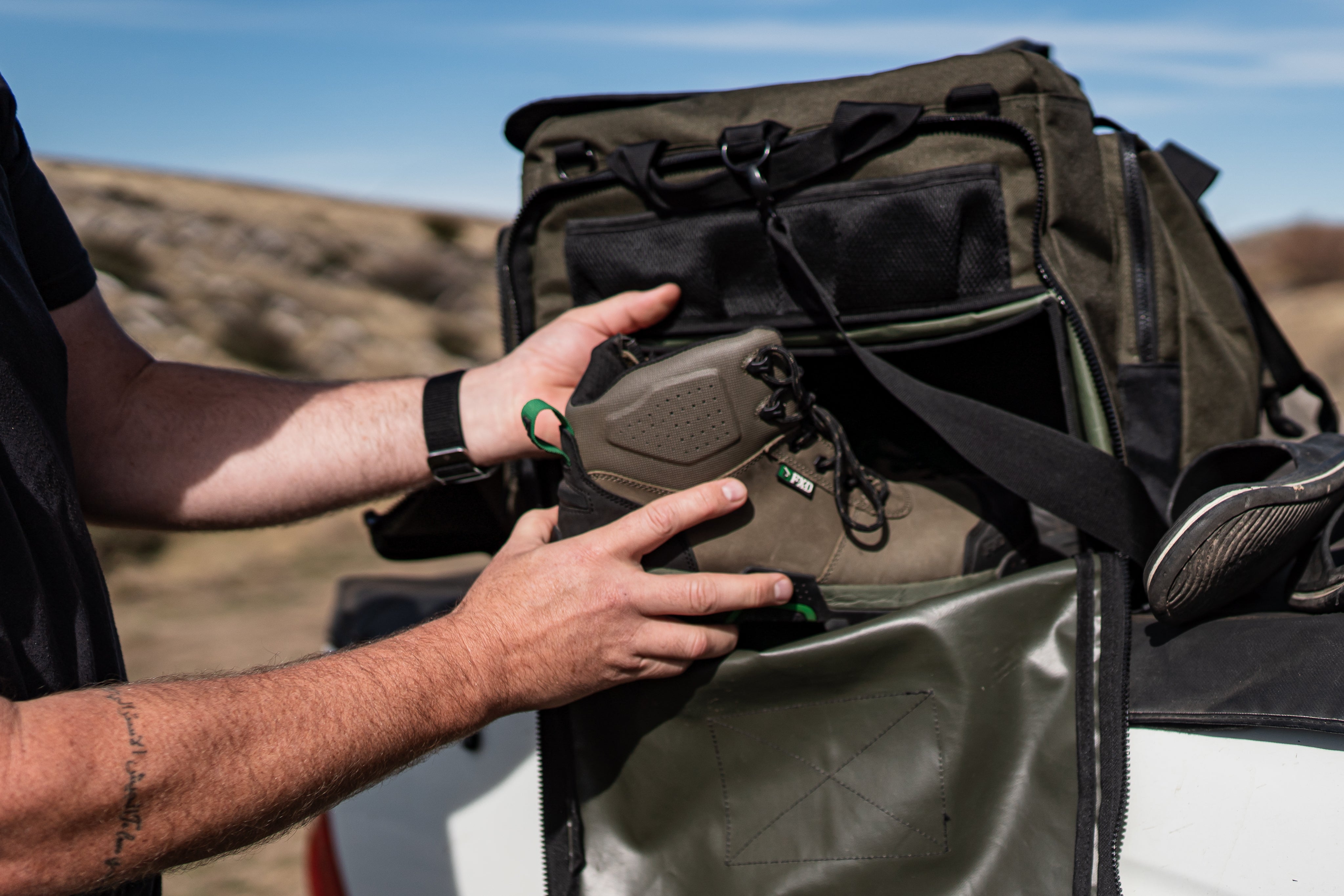 Fully waterproof lined keeping dirt and odour separate from the rest of your kit. Fits even large boots (up to men’s size 12 and a pair of thongs or all your dirty laundry).